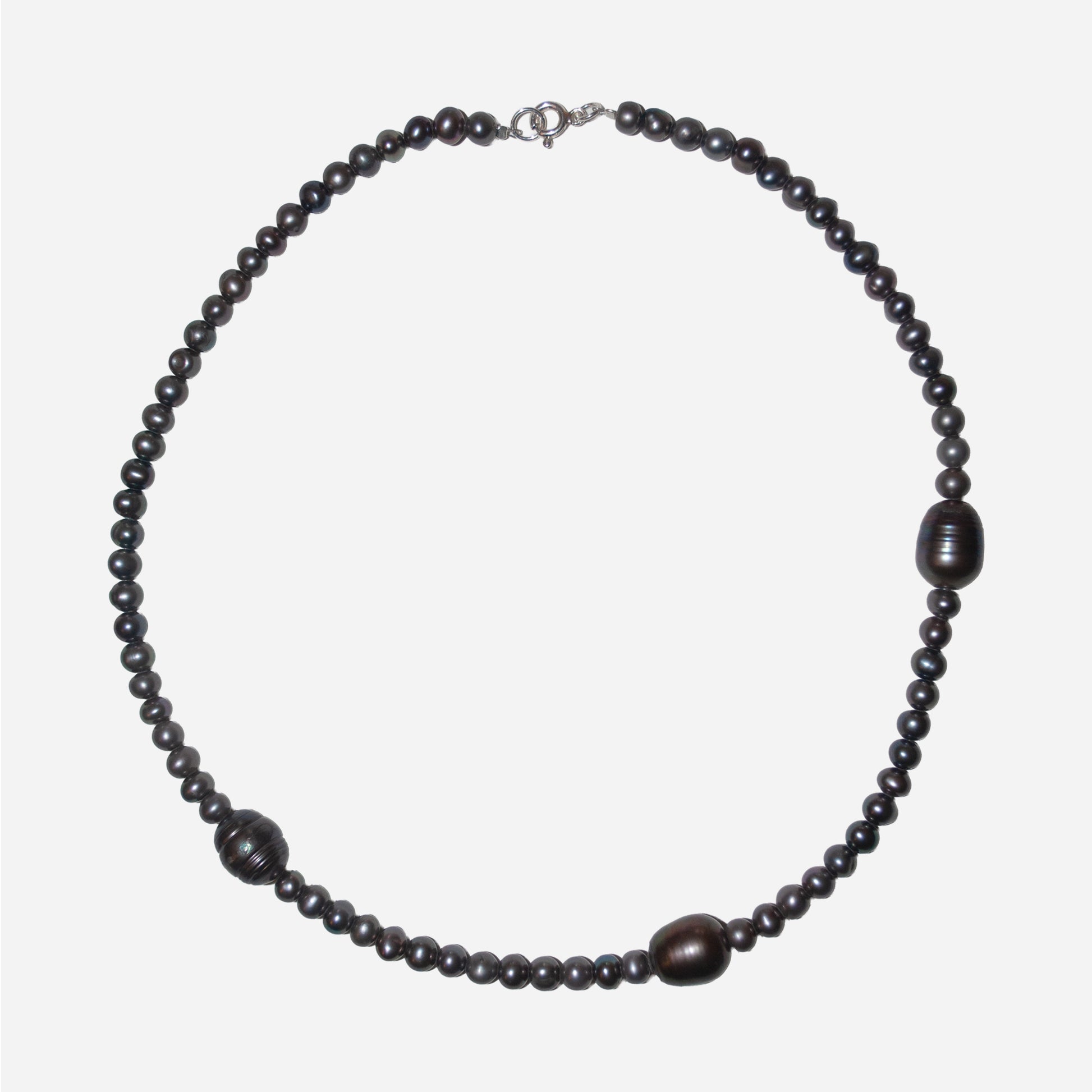 Zaprojektowany i ręcznie wykonany w Polsce naszyjnik ze srebra próby 925 z metaliczną perłą hodowlaną - oryginalny, ponadczasowy i elegancki.