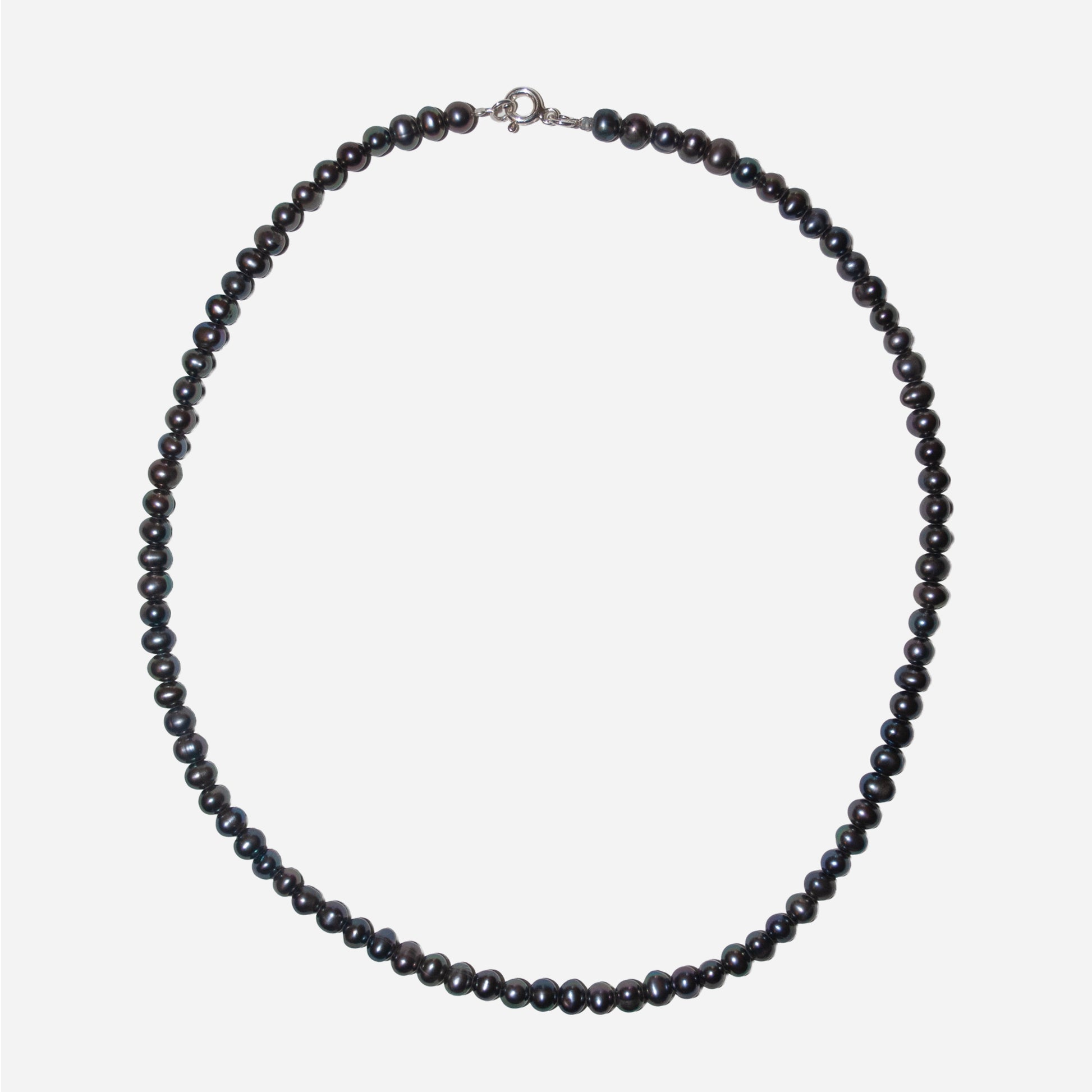 Zaprojektowany i ręcznie wykonany w Polsce naszyjnik ze srebra próby 925 z metaliczną perłą hodowlaną - oryginalny, ponadczasowy i elegancki.